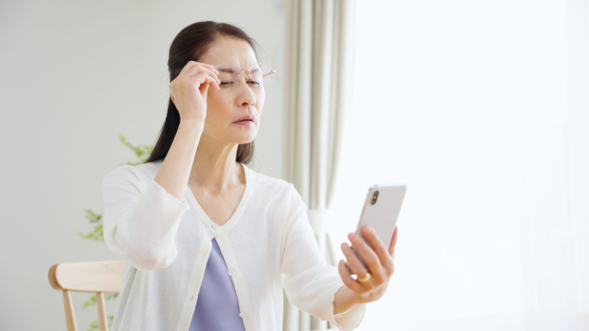 しかし、老化によってその機能に衰えが生じ、遠近のピント調節の切り替えが出来なくなり、手もとがぼやけたりします。